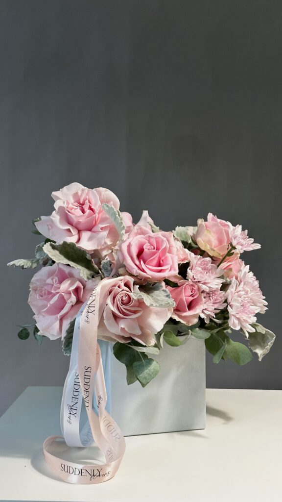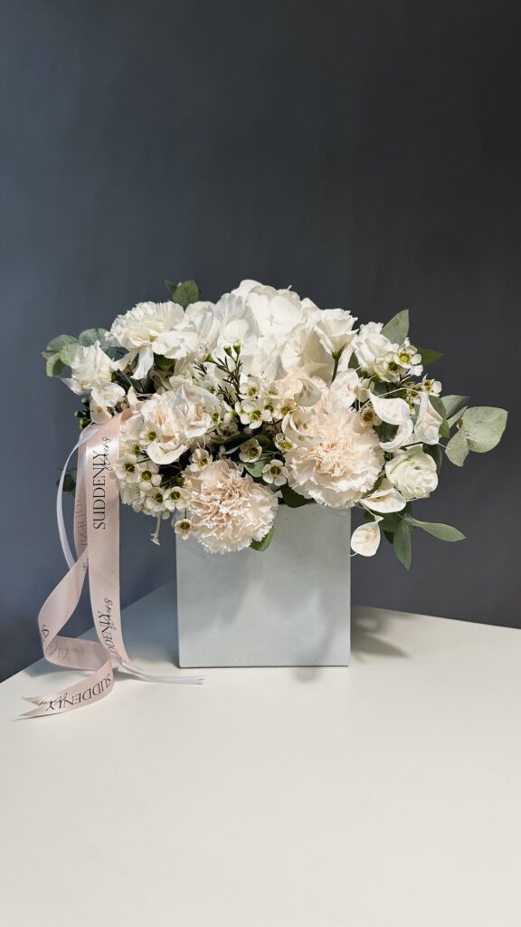 The flowers are cut short and placed in a wet oasis sponge. The boxes can be classic round shapes or freeform, adding a unique charm and character to the arrangement.